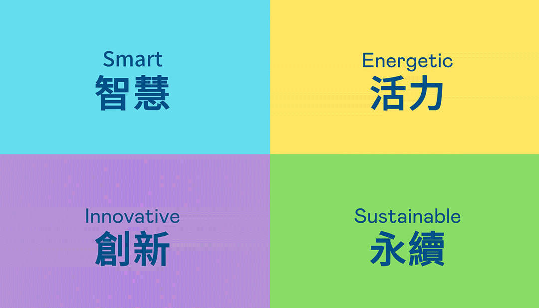 從穩重、信賴的PG国际藍開創新色彩,注入象徵智慧藍、活力黃、創新紫、永續綠的品牌色及動態多變的幾何圖形,呼應不設限的「Possibilities」精神,代表多元的專業技術及領域,在碰撞中相互觸動、融合、延伸,持續激盪出更多新的可能性。